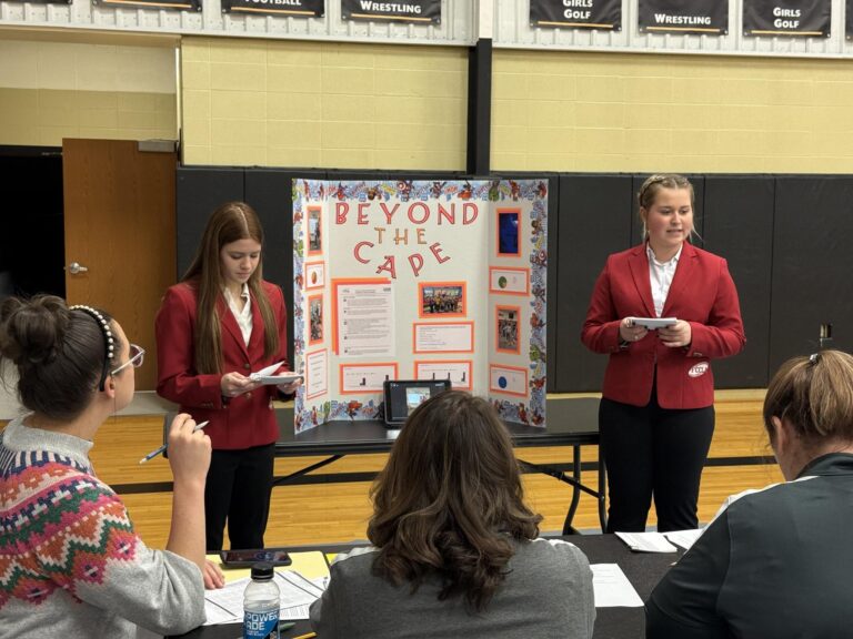 Gabe Stark/Staff Photo Kinsley Otto and Summer Meeker presenting Beyond the Cape a program they designed to teach kids about healthy eating habits.Gabe StarkThe Trenton Telegraph Family, Career and Community…