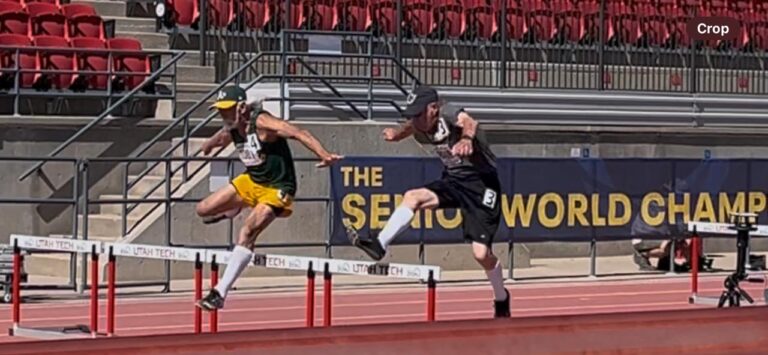 Gary Schuett jumping hurdles at Huntsman Senior World Championships, St George Utah Submitted photo Gabe Stark The Trenton Telegraph Gary Schuett of Trenton recently made his mark at the Huntsman…