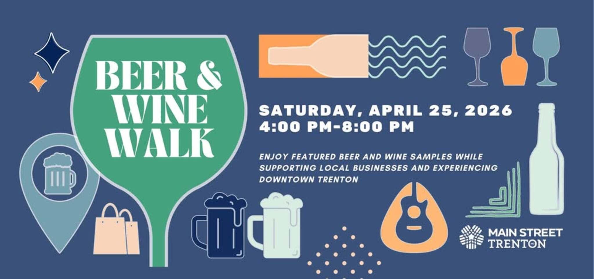 Main Street Trenton will host a Wine and Beer Walk from 4 to 8 p.m. Saturday, April 25, along Main Street.