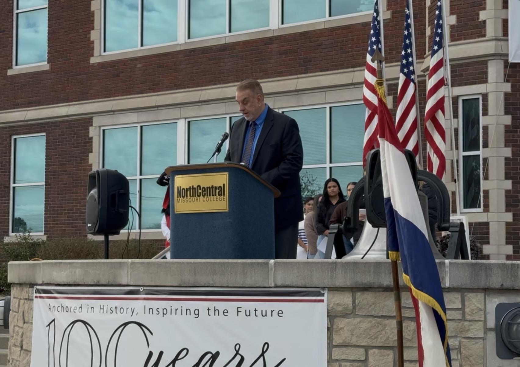 President Dr. Klaver speaking on the importance of Veterans Day